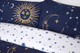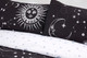 Stunning celestial duvet set featuring an ethereal design of metallic suns and moons on a rich dark background. This design is also fully reversible with an angelic, contrasting ditsy star reverse.