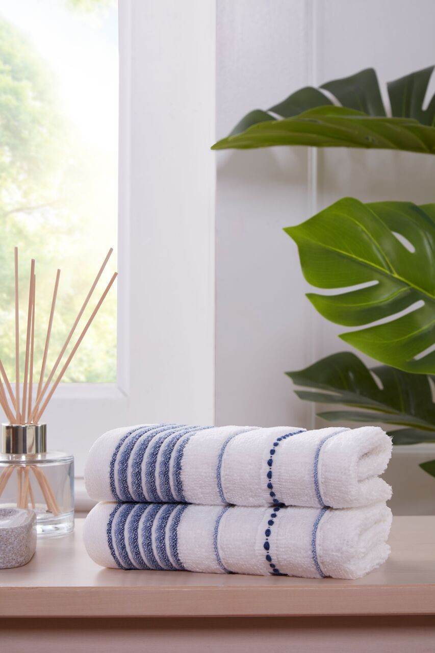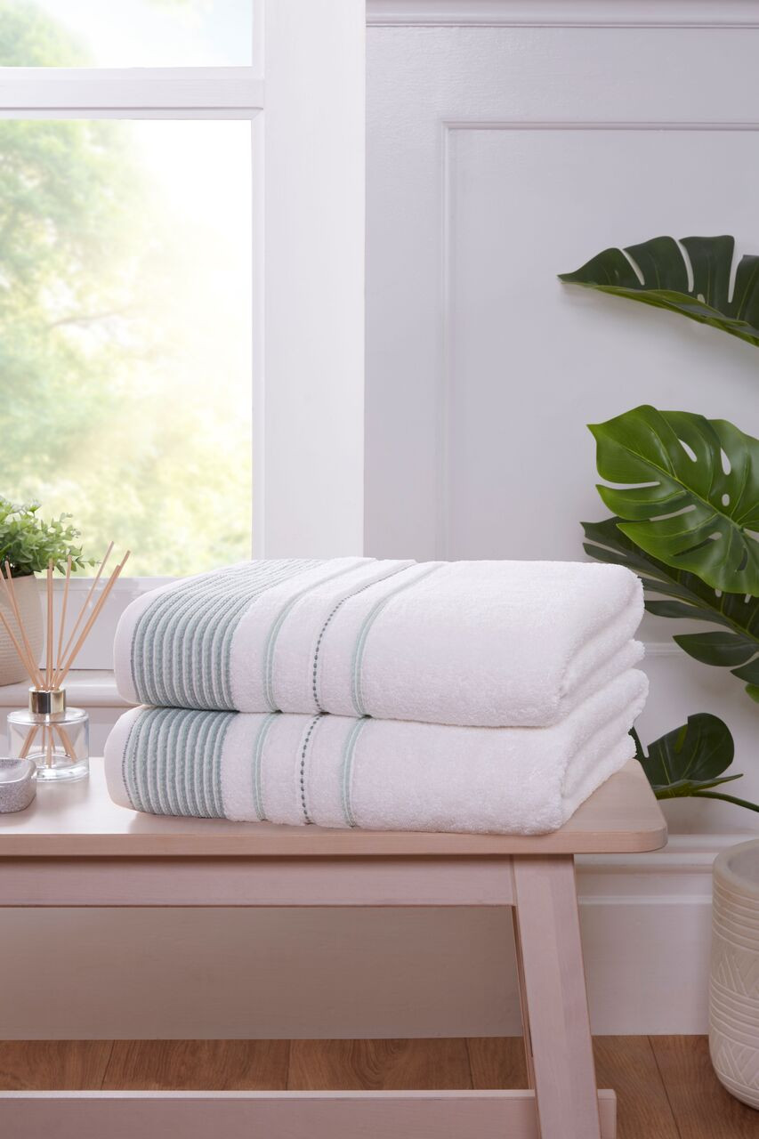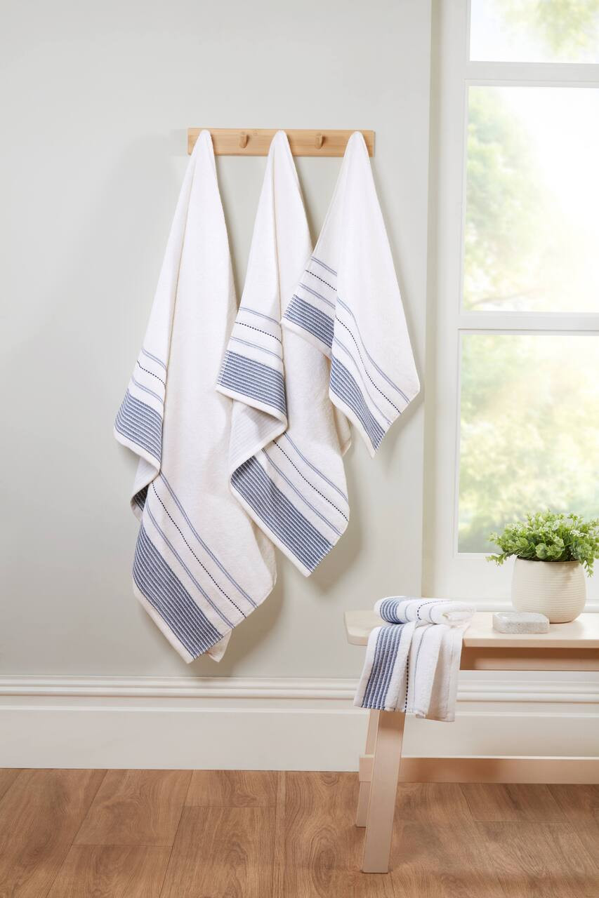 Elements by Rapport presents the Dakota Stripe Towel Collection. This crisp, striped design offers a striking and modern contrast to the solid white textured body, creating a refined and balanced aesthetic. Perfect for creating a spa-like atmosphere in your home, this set offers a perfect blend of high-quality comfort and contemporary design, ensuring a luxurious experience every time you step out of the shower. Available in Blue, Green and Natural colourways to suit every taste.