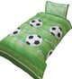Our goal duvet cover set will add the perfect finishing touch to a football themed bedroom. The design features a collection of footballs with the words score and goal set on a green football pitch themed background, with a goal net on the pillowcase.