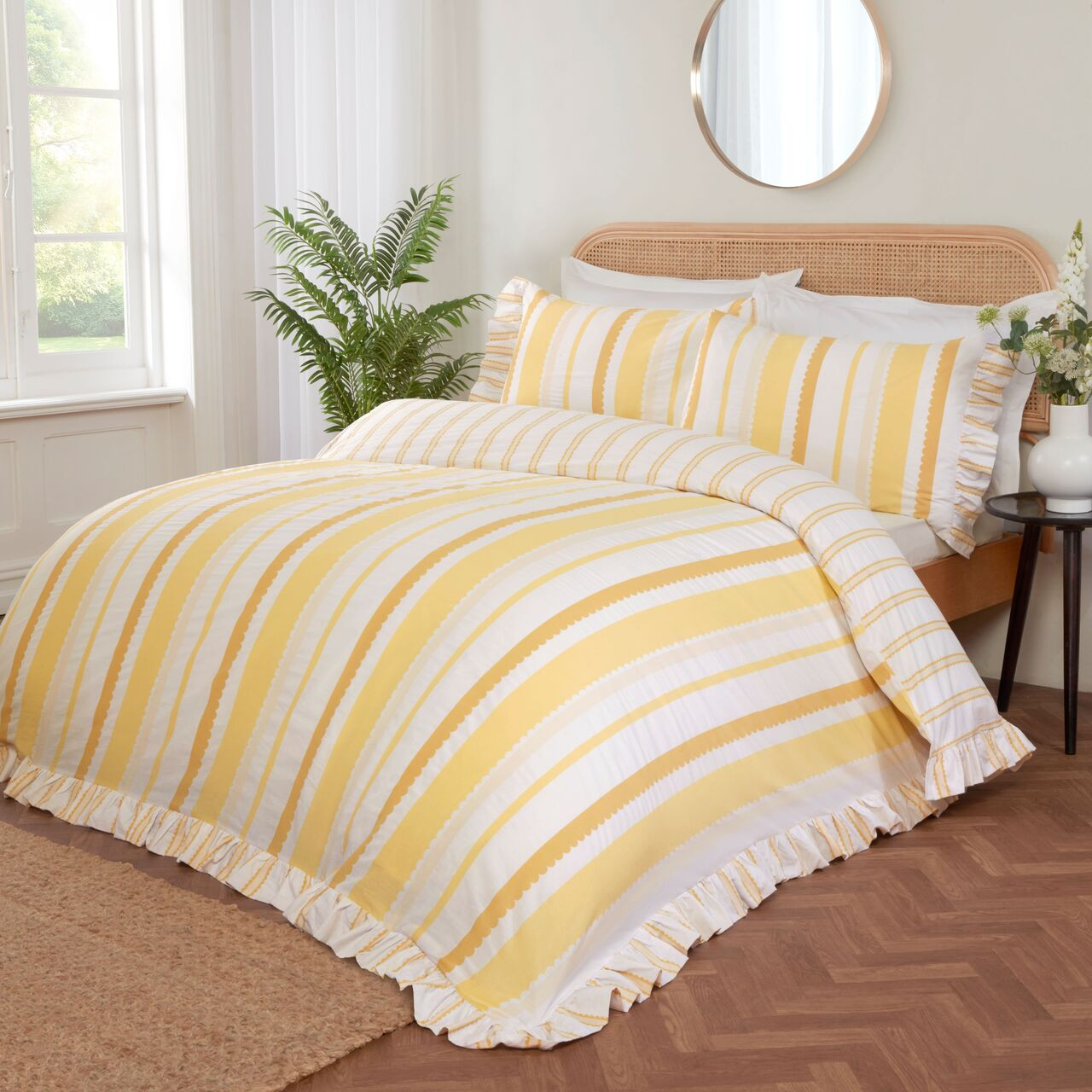 Elevate your bedroom into a serene, romantic sanctuary with the Maya Frilled Microfibre Duvet Set. Available in three timeless colourways, this set is crafted from premium, soft-touch polycotton fabric that offers a smooth, breathable feel and effortless, wrinkle-resistant care. The standout feature is the elegant, oversized frilled border that frames the duvet and pillowcases, adding a touch of vintage-inspired charm and sophisticated texture to an otherwise minimalist design.