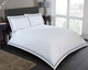 A contemporary elegant minamilist design featuring an embroidered rectangular border frame. Also featuring on the pillowcases.