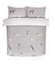 A stylish and sophisticated canine themed duvet set. Featuring hand drawn doggies on a beautifully textured ground and with a stripe reverse making it fully reversible. Made from 180tc Microfibre making it non-iron, durable and machine washable.