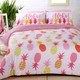 Contemporary and fun reversible duvet set with a hawaiian pineapple printed design and a co-ordinating geometric reverse.