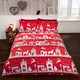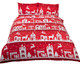 Our reindeer road design features a scandi town silhouette with a scattering of reindeers and christmas trees, available in red and grey. Printed on 100% brushed cotton.