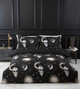 Introducing our enchanting Gothic-inspired bedding set, designed to transform your bedroom into a mystical realm of dark allure. Embrace the dark beauty of the night with a striking blend of skulls, suns, and moons, perfect for those who revel in the spirit of Halloween all year round. Fully reversible.
