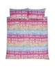 This fun and bright tie dye duvet cover featuring a vibrant striped tie-dye design in super trendy shades of pink, purple, yellow and blue with matching pillowcases.