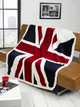 This printed throw is of the great british union jack flag. The printed side is made of soft touch coral fleece with a sherpa fleece reverse.