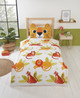 This fun children's bedding set is perfect for brightening up any room. Featuring large scale wild cats in bright oranges and greens. The pillowcase features 3D shaped ears for a great effect. This design is fully reversible.